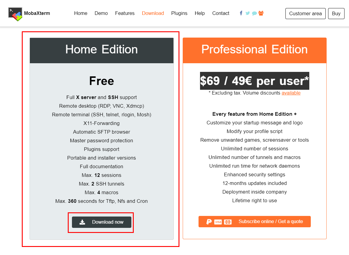 X서버와 SSH 전체지원 원격테스크톱(RDP,VNC, Xdmcp) 지원 원격 터미널 지원((SSH, telnet, rlogin, Mosh) X-11 포워딩 마스터 암호 보호 플러그인 지원 포터블 버전과 인스톨 버전 제공 전체 문서화 최대 1ㅈ개 세션 최대 2개의 SSH 터널 매트로 4개 Tftp, Nfs 그리고 Cron을 최대 360초 연결 |