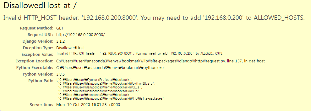 ALLOWED_HOSTS = ['*'] 이 부분을 수정해야 한다.