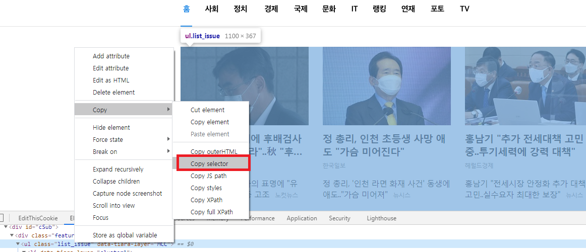 soup.select를 모른다면 하단의 이미지를 통해서 위치를 파악할 수 있다.
