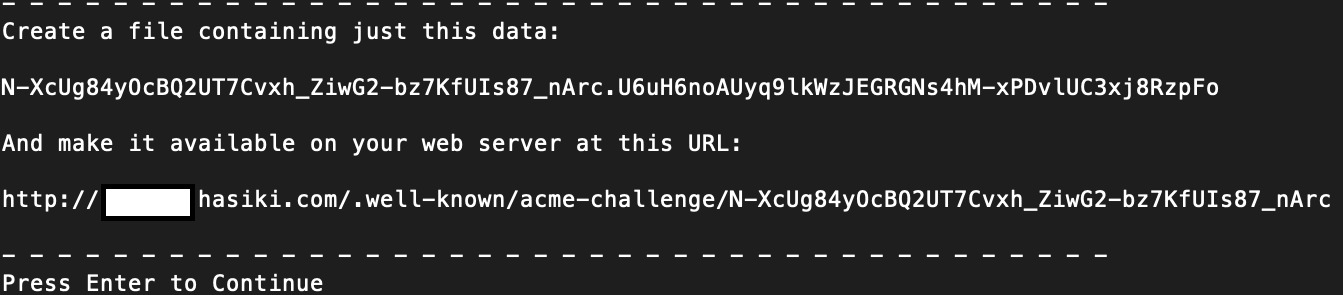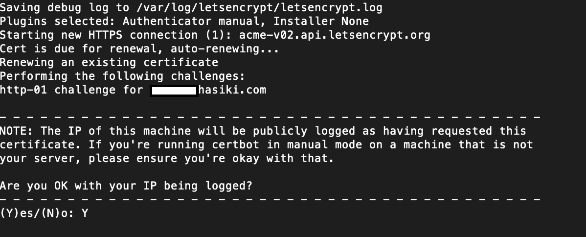 certbot certonly --manual -d 'hasiki.tistory.com'