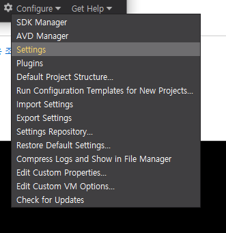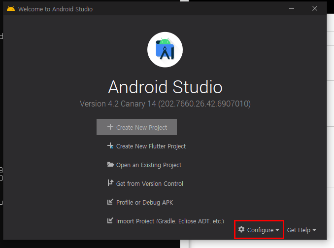 1. 안드로이드 스튜디오 Configure 클릭
