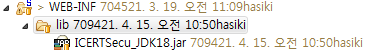 외부라이브러인 ICERTSecu_JDK18.jar 라이브러리를 추가하였다.