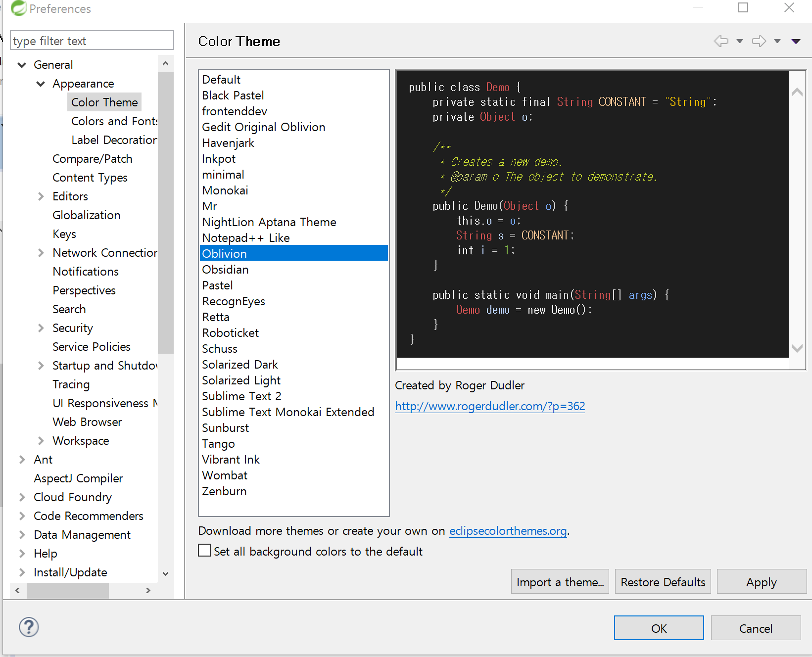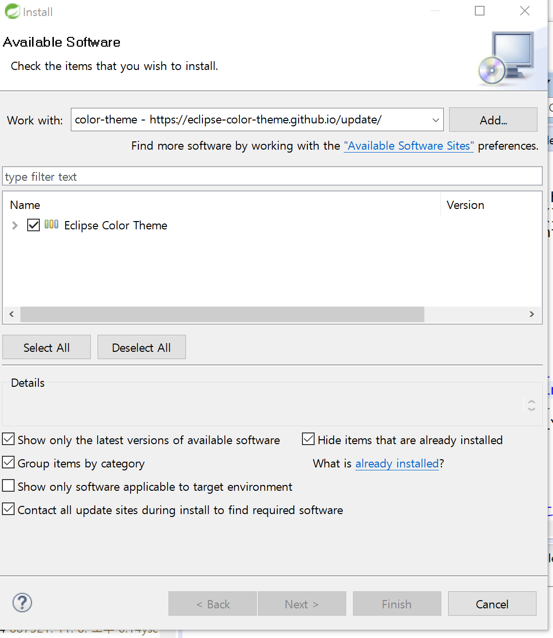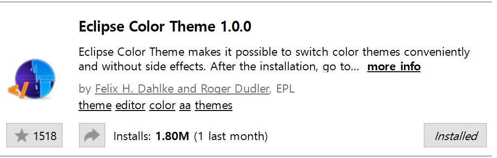 Color Theme를 쓰고 싶다.. 다만 이클립스 마켓에서 검색시 설치하면 오류가 뜬다.